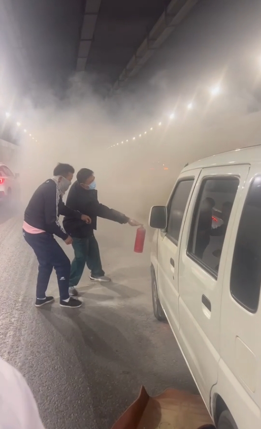 據(jù)了解,11月11日6:40分左右,我院120救護(hù)車在執(zhí)行完急救病人轉(zhuǎn)院市內(nèi)某醫(yī)院的任務(wù)后,在返回醫(yī)院的途中途徑三河口隧道中段處時(shí),突然有人大呼“車輛起火了!”此時(shí),只見(jiàn)一股濃煙和火焰從一輛車中噴涌而出,情況十分緊急。發(fā)生自燃的車輛駕駛員在隧道里中間非常著急攔截車輛。我院救護(hù)車司機(jī)發(fā)現(xiàn)后立即停車,急救人員王通新、張濤、陳泓任迅速下車,組織開(kāi)展救火并安排駕駛員緊急呼叫119。