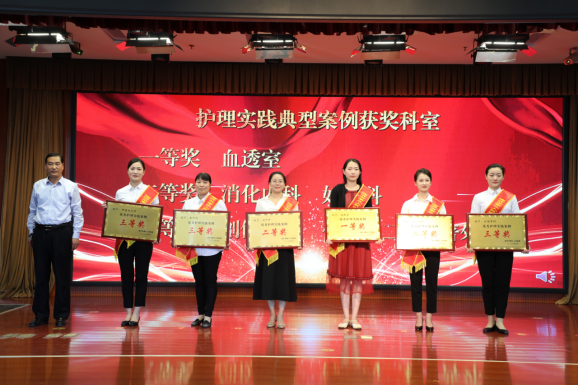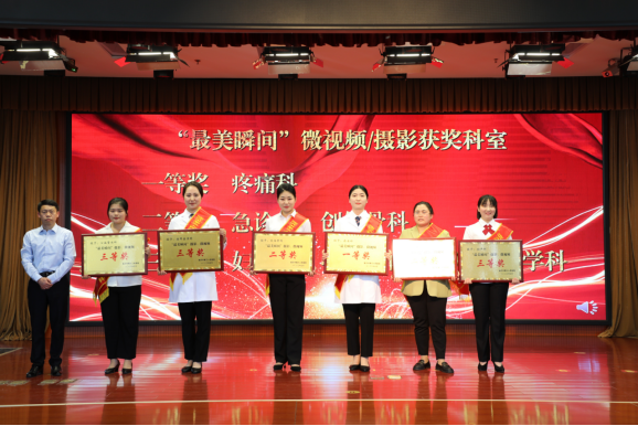 在激揚(yáng)動聽的樂曲中,院領(lǐng)導(dǎo)王瑞鴻、韋有華、喬斌、賈慶民、張傳國分別為優(yōu)質(zhì)護(hù)理服務(wù)先進(jìn)科室、護(hù)理實(shí)踐典型案例、“最美瞬間”攝影/微視頻、最美護(hù)士、“臨床護(hù)理50項技能操作理論知識競賽”優(yōu)秀獎、優(yōu)秀護(hù)士長頒獎。